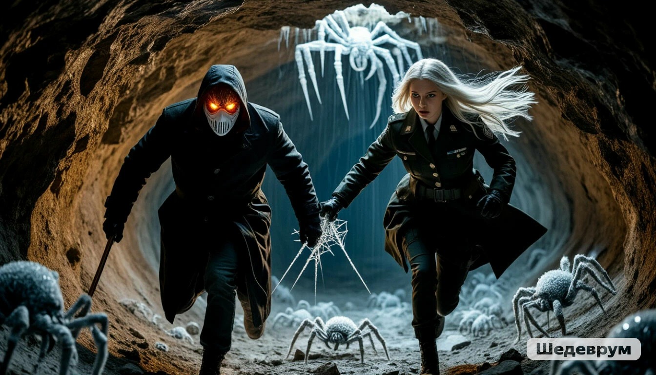 И она атаковала. Раздался странный, булькающий звук, и из распухшего тела паука-прародителя вырвался сгусток тёмной материи. Он не летел по прямой — он извивался в воздухе, как живой, и на лету начал рассыпаться на десятки, сотни мелких, юрких существ, точь-в-точь похожих на своего создателя, но размером с кулак. Они падали на каменный пол с противным щелчком, мгновенно ориентировались и, словно единый рой, устремлялись в погоню за двумя беглецами. Их хитиновые лапки отстукивали по камню сухую, частую дробь, похожую на стук костяных пальцев по стеклянной поверхности.