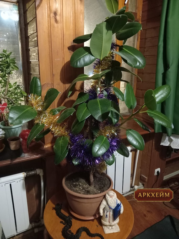Моя личная новогодняя традиция - новогодний фикус) Потому что елка - это слишком просто, а вы попробуйте гирляндой обернуть все листья, а потом это распутать
