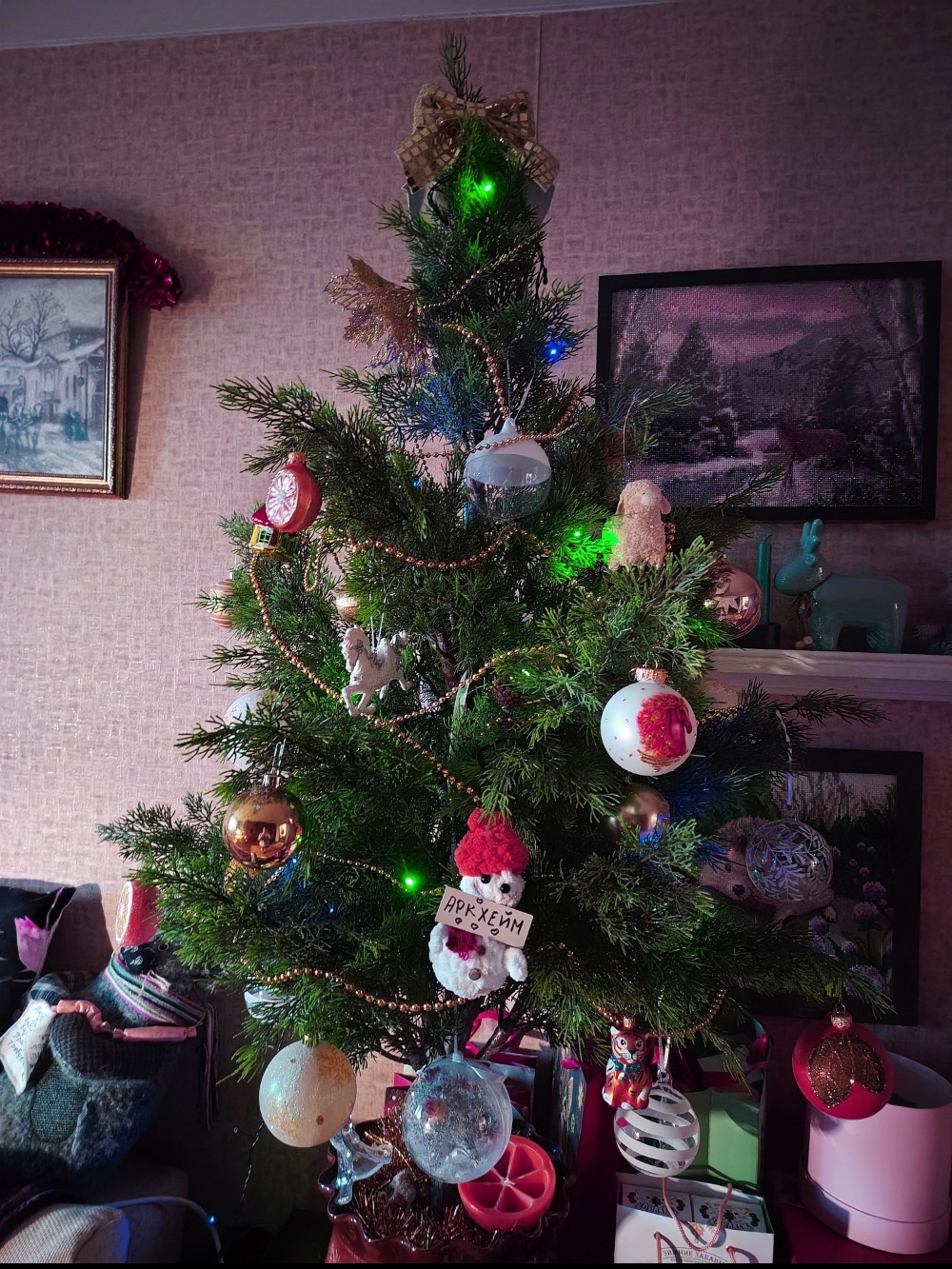 Стадо котов в квартире накладывают ограничения на украшения...Мишуры нет, шарики с нижних веток до мая выковыриваются из-под дивана... хДд