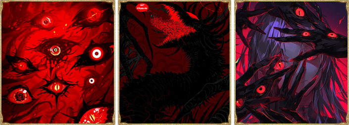 Но истинное предназначение гримуара — это визуальный атлас всего многообразия монстров и зверей Аркхейма, что видел Таска за долгую жизнь. Том может сам зарисовать монстра, так как Таска рисовать не умеет, а потом достаточно сделать какие-нибудь пометки на будущее. Уже сейчас существ в книге невероятное количество (включая хтонов и иномирцев), а если Бладскал сконцентрируется, то может сделать заметку о монстре, которого в реальности не существует.