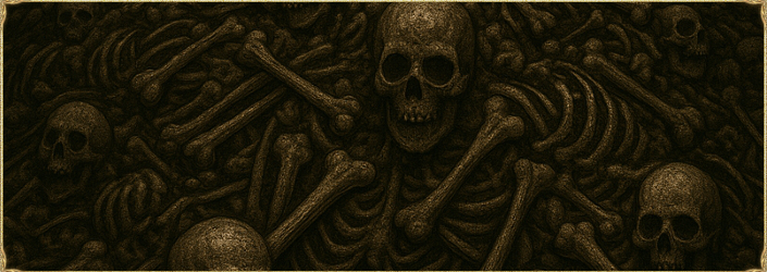 Оказавшись возле могильника, Ди-Кель ловко забралась прямо на верхушку и принялась изучать костяную гору на предмет наличия следов некромантии или же какой-либо болезни. Прошло некоторое время. Анализ поддавался с трудом, словно кто-то или что-то мешало исследованию: никаких недавних следов магии, никаких признаков насильственной смерти – все кости были идеально целые, в том числе и черепа, однако...