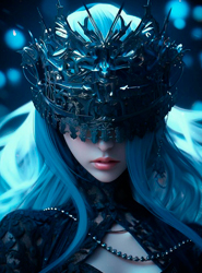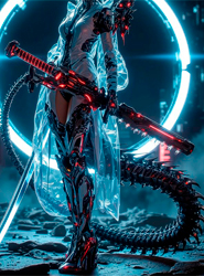 Хоть, ее телосложение остается таким же хрупким и женственным, но, тем не менее, становится жилистым и более гибким. На кончиках пальцев рук появляются черные заостренные немного вытянутые когти. Клыки слегка заостряются практически как у вампиров. Уши также заостряются как у эльфов. Волосы такого же цианового цвета, длиной ниже бедер, чаще всего ее волосы свободно ниспадают ниц. В образе хтоника на голове появляются удлиненные острые рога, кровавого цвета, а на спине кожистые крылья цветом в тон волос, цвет глаз приобретает алый оттенок, также в боевой форме имеет длинный костяной черный хвост с заостренными шипами, длиной около двух с половиной метров.