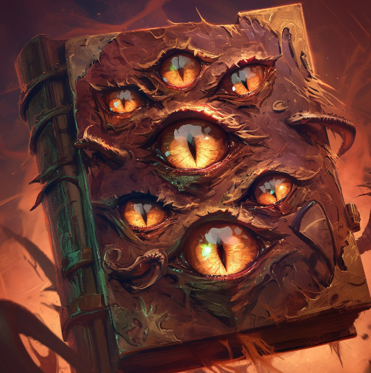 Великий гримуар, подаренный графом Арканы — Сандро Ветротканным. История возникновения этого артефакта покрыта мраком таинственности (Таска просто не знает). Обложка книги является шкурой какого-то монстра, невероятно крепкой и прочной, чтобы выдержать огонь, воду, медные трубы, пролитый кофе и небрежное отношение. Также на обложке есть глаза, которые действуют полностью независимо: могут смотреть в одну точку, друг на друга или вообще спать. Уголки и корешок книги укреплены металлическими деталями не меньшей прочности. Страницы разных оттенков: от серого до желтоватого пергамента. В руке орка выглядит увесистой книжкой, а для хумана будет тяжеленым талмудом, который не хочется уронить на ногу.