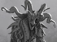 Всех прибывших сюда первым делом встречает безликий серый призрак. Он словно соткан из клубов дыма и единственной его отличительной чертой является горящий зелёным светом вопросительный знак, расположенный прямо на его груди.