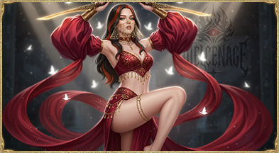Оказывается сзади какой-то, маленькой госпожи, без оружия, проводит руками по плечами изящным, скользит тканью, шёлк на ощупь приятный, и кто-то говорит, что её кожа почти такая же на ощупь. Отдаляется от красавицы, бедрами двигает, заставляя монетки звучать, поддерживая мелодию.