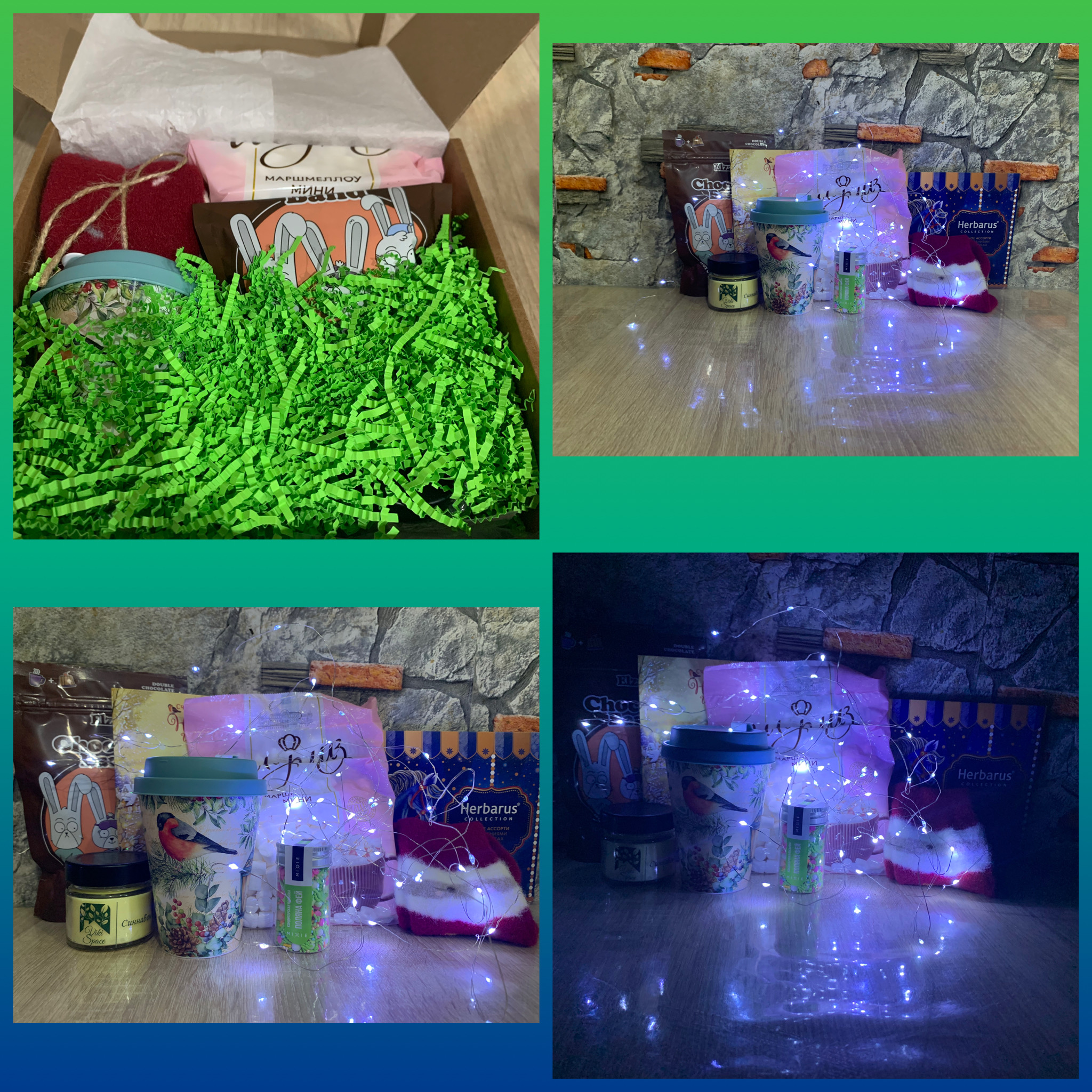 Я сделала целую кучу фоток. Насладилась ароматом свечи. Ощутила насколько мягкие и нежные носочки на ощупь ^^ А за гирлянду прям поклон низкий.